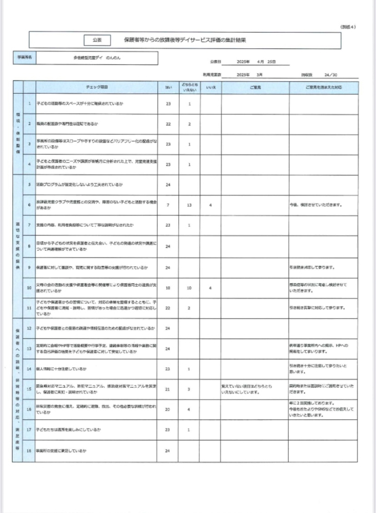 令和6年度放課後等デイサービス評価表 公開